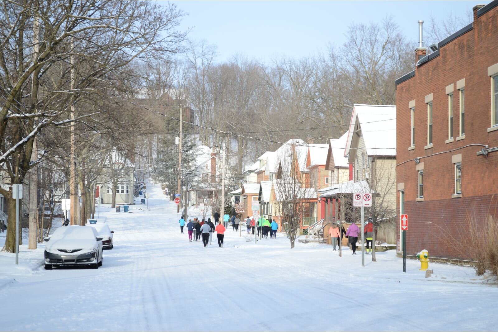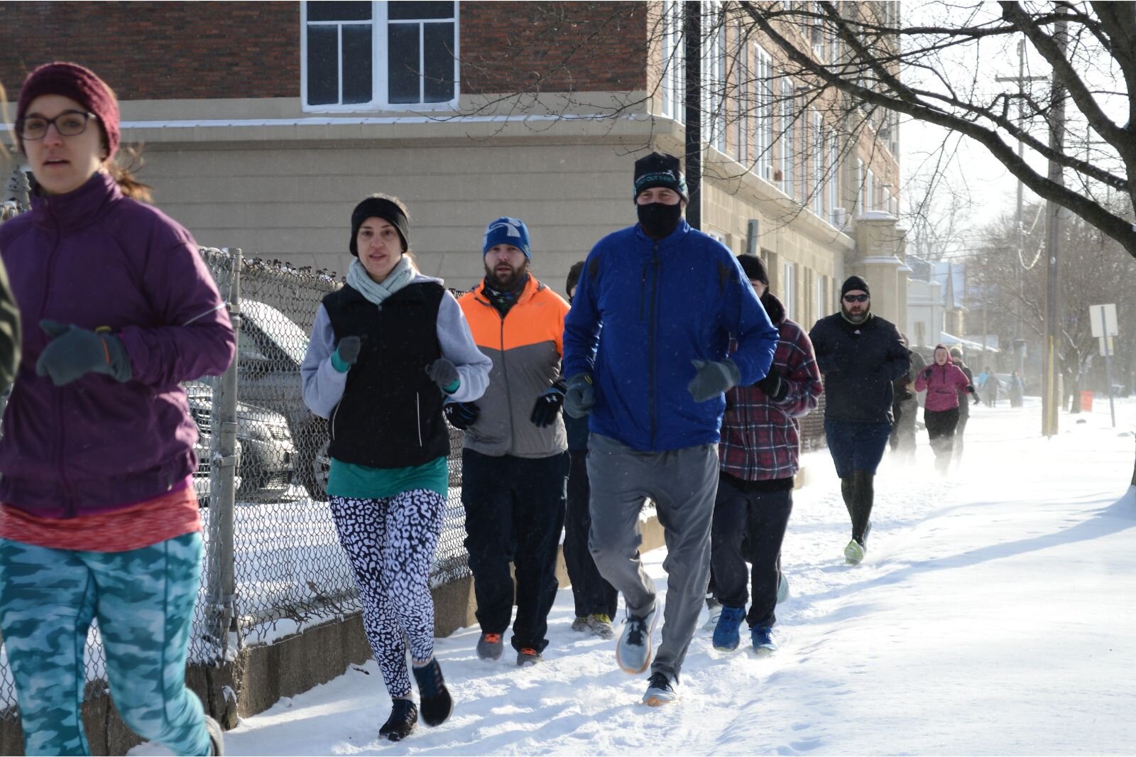 Yet, they came to run. They put Yaktrax on their shoes to keep from slipping on the snow and donned just the right layers to stay in that area between freezing and sweating.