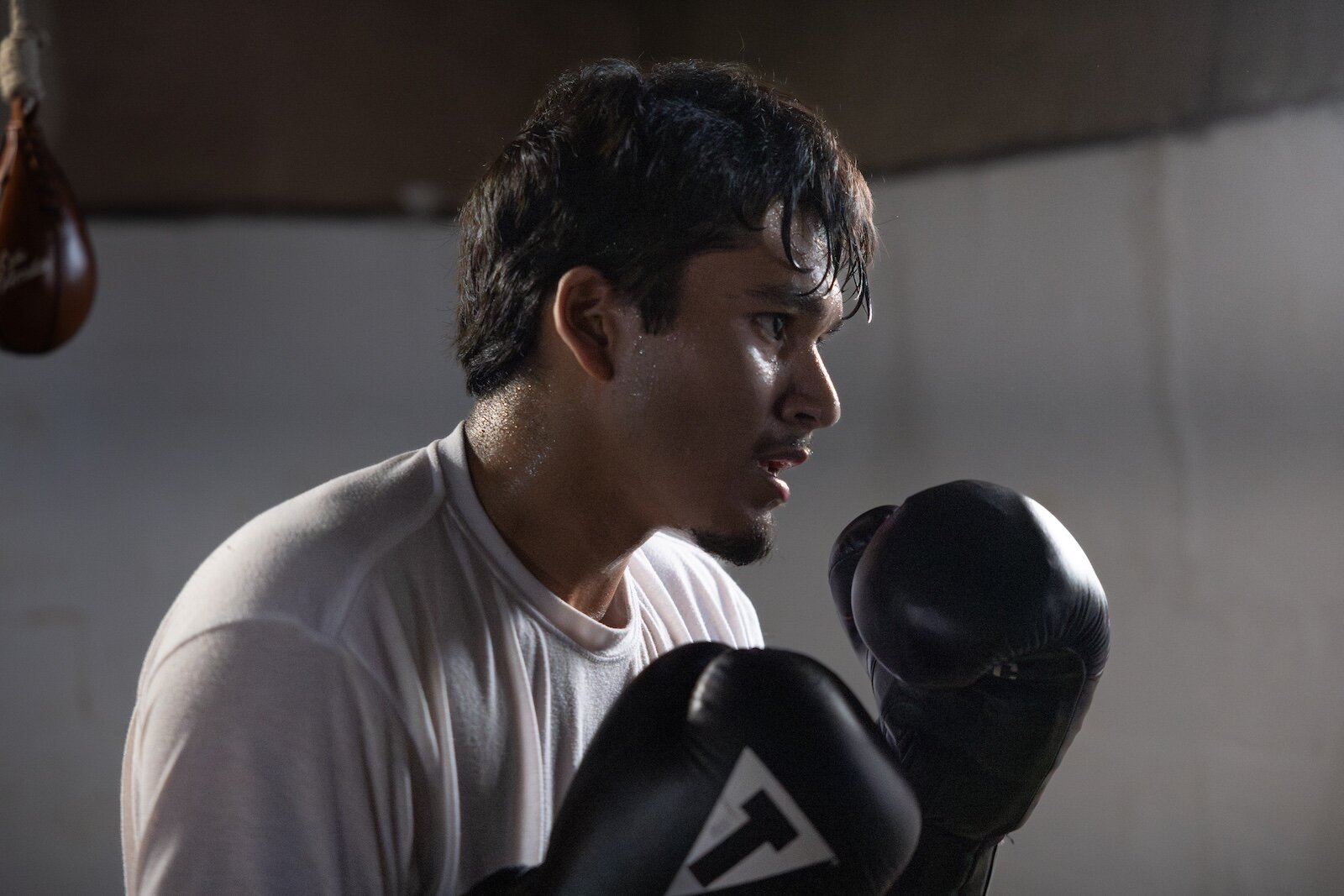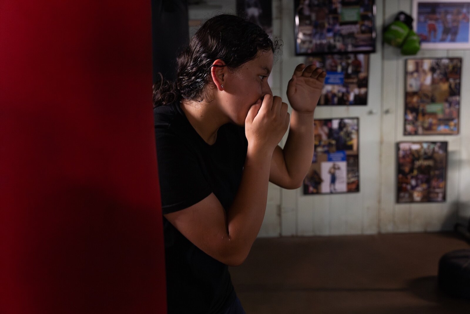 Dahira Valadez warms up on a speedbag before training.