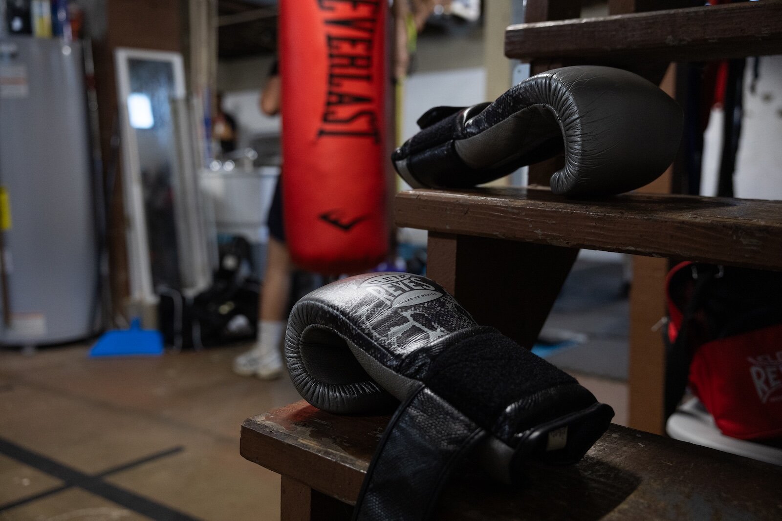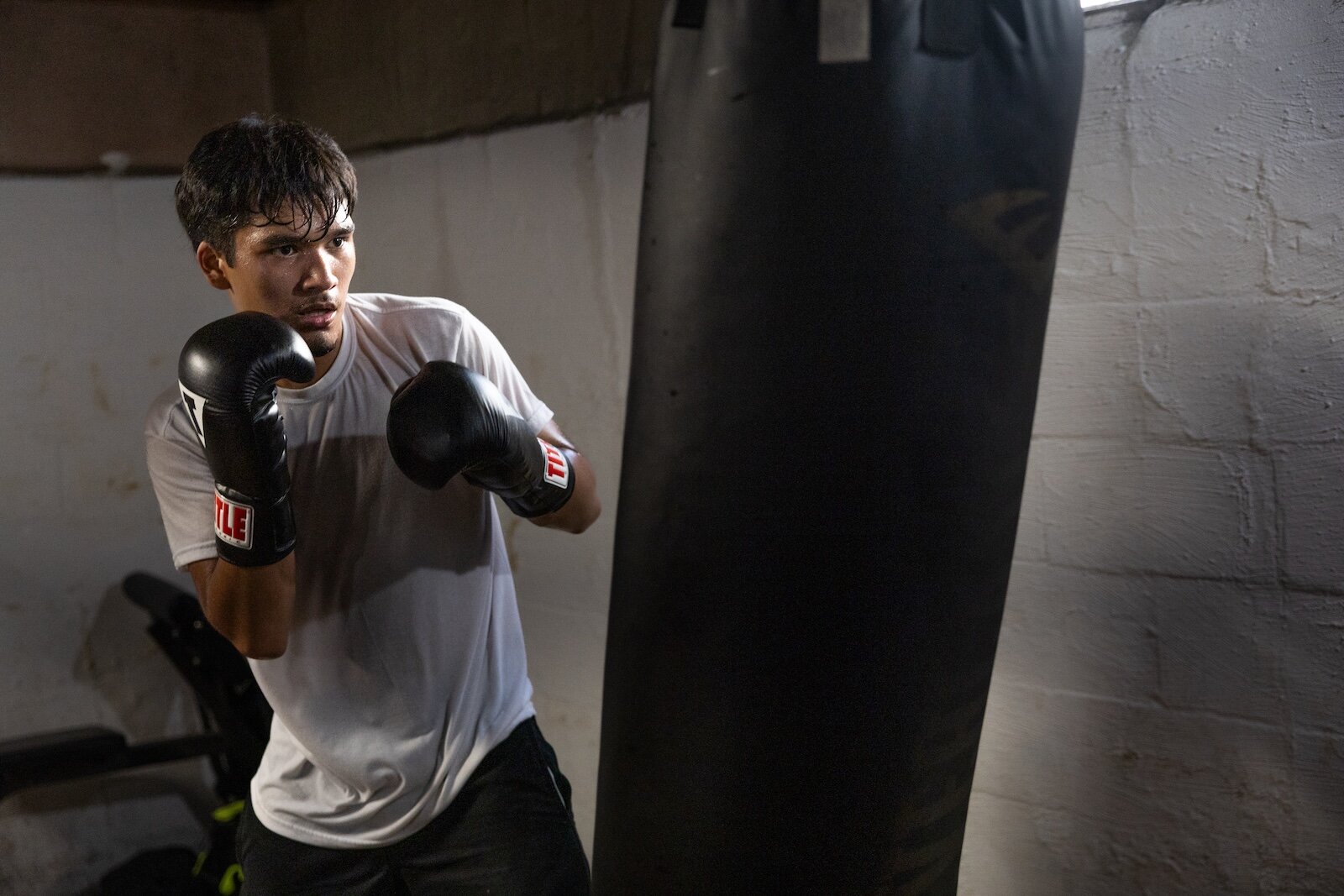 There’s no doubt about it: This basement is a boxing gym.