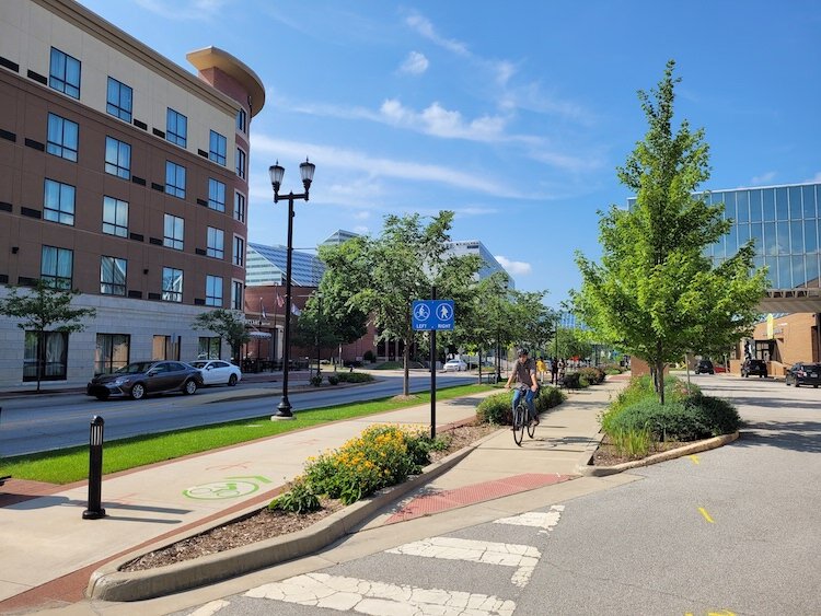 Wide, multi-lane, high-speed, one-way roads through downtown have to be changed to two-way city streets, with traffic-calming elements. The city’s downtown needs a major change, not just for the safety and benefit of pedestrians and bicyclists, but to improve business and make downtown a place people want to live, work, and play.