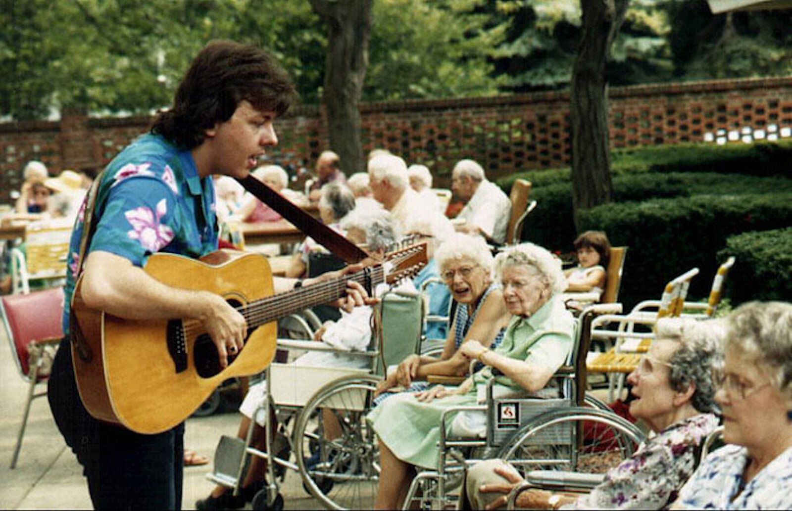 “It has been shown in studies on patients with Alzheimer’s that they can remember song lyrics when all else fades,” he says. “I remember one woman who was slumped in her wheelchair at the end of a semi-circle where I was performing. I kept singing to her, but I couldn’t get a response. I sang to her again and again, and about the fifth time, she looked up and gave me a big wink. After that, she would go up and down the aisle at the facility, singing ‘This Little Light of Mine.’