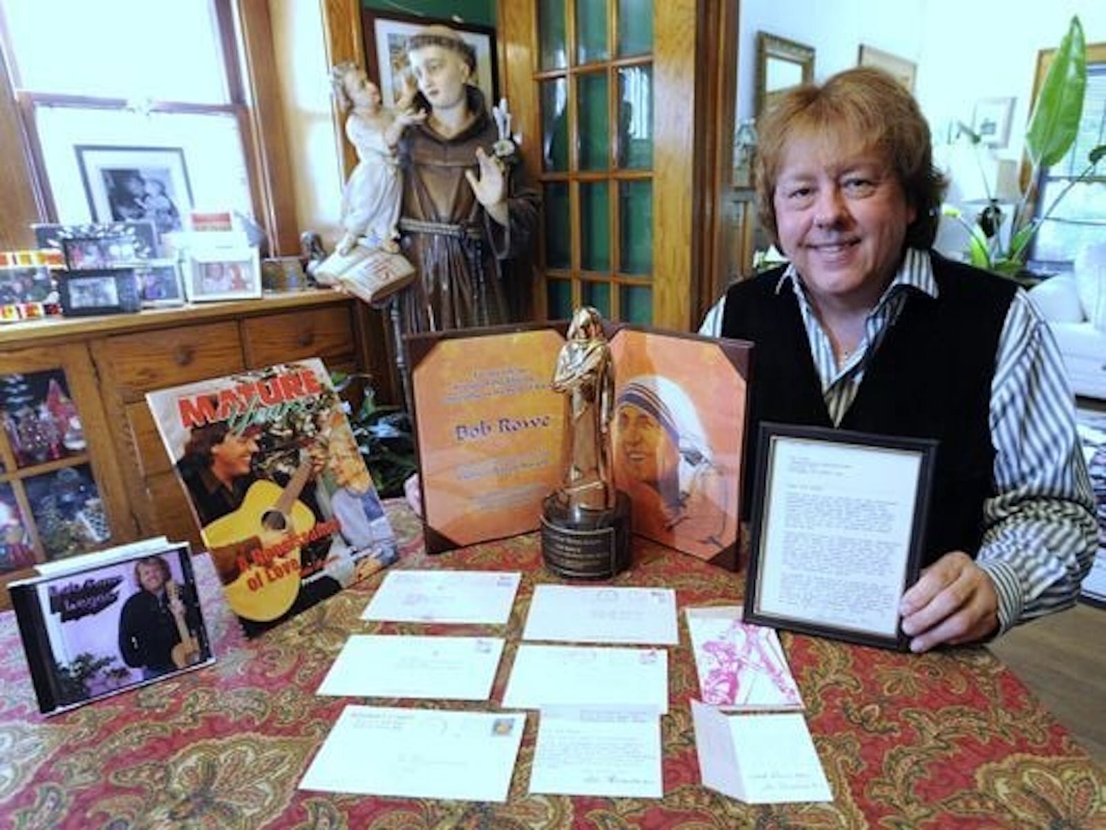 “I first wrote to Mother Teresa in the 1980s. It was like a catharsis as I shared with her my frustration with secular music when I wanted more to work with seniors,” Rowe says. “And she wrote back! I was flabbergasted! There it was, about six weeks later, a yellowed letter from India in my mailbox. She liked what I was doing with my music.”