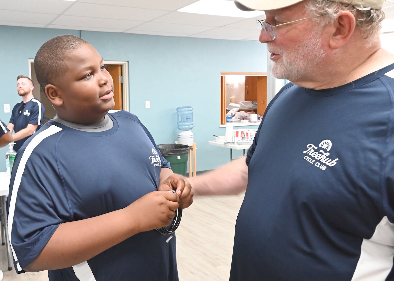 “We teach basic skills like how to replace tubes and tires, chains and cables, and how to do pedals and grips. We’re giving these kids exposure about how to diagnose and address common issues they may face with their bikes,” Sherfield says. “Some of these jobs require specialty tools, and we are a bike shop that has that. We’ve taken what Open Roads has done and condensed this into an area relying exclusively on volunteers.”