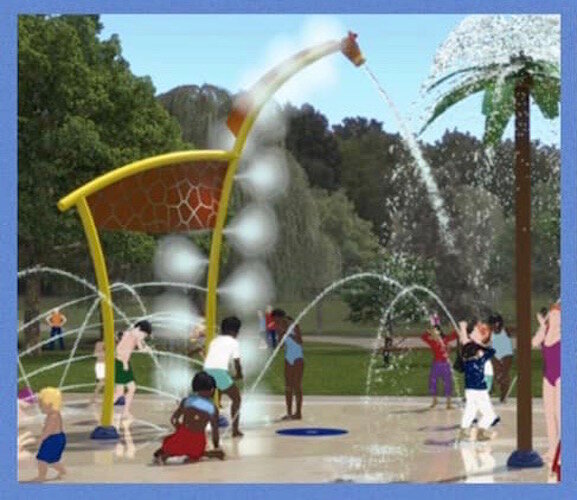 “It’s in the Washington Heights neighborhood where there are so many children and families within walking and biking distance of the Splash Pad location. It’s jungle motif and elements are also fun and inviting,” she says. A 17-foot tall giraffe, zebra water cannons, and a sprinkling palm tree will be included in the splash pad.
