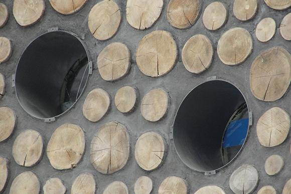 Hardly any structure with wooden walls, however intricate, is going to turn heads. But what about a building with sectioned logs in place of bricks?