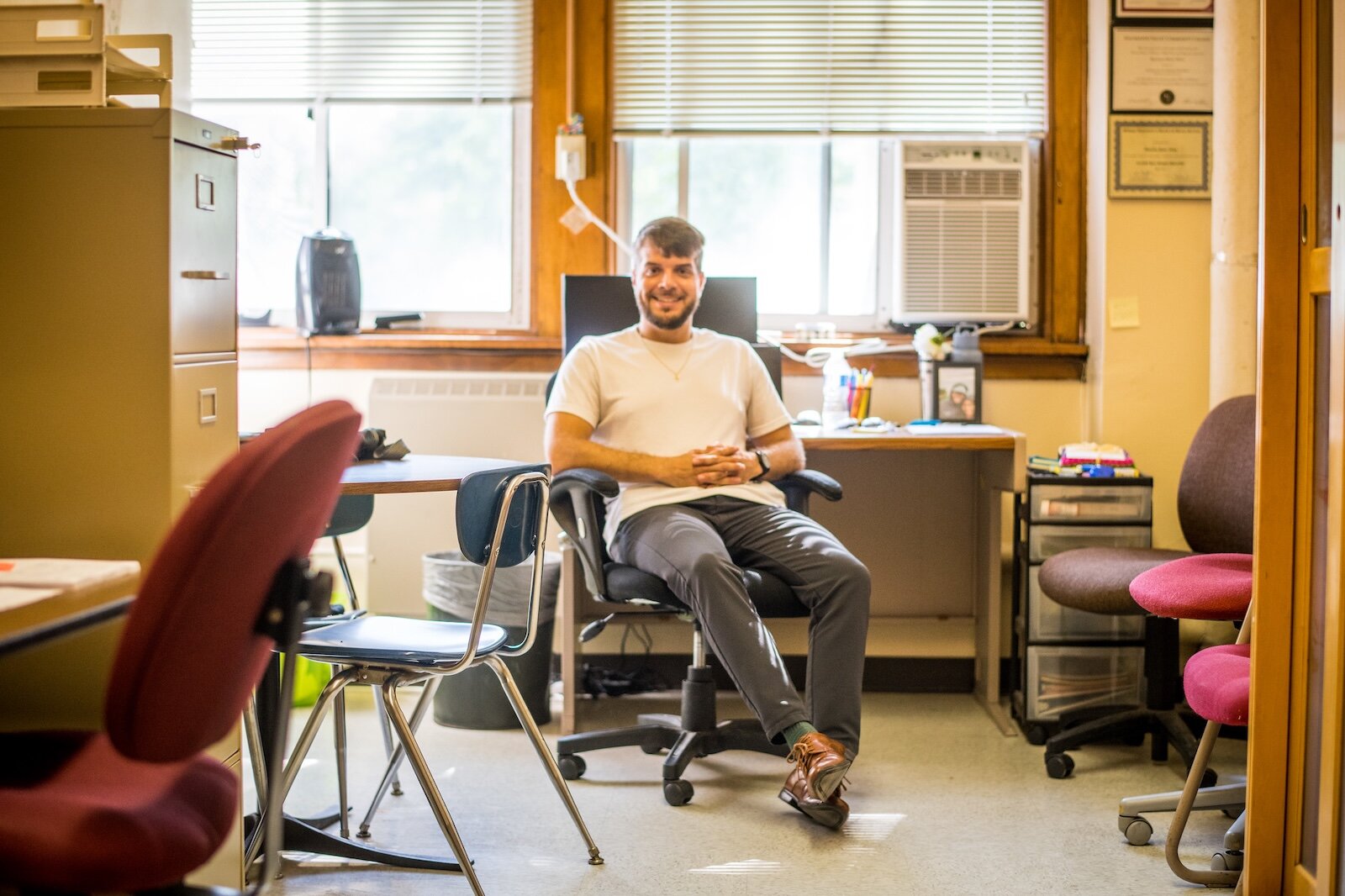 At his office in Chenery, just down the hall from the Kalamazoo Public Schools McKinney-Vento office, Mion pulls out two file cabinet drawers packed with files of youth and families he’s helped get a home. “Like, 150 families.”