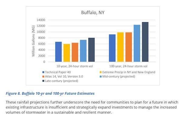 In Buffalo, N.Y., the rainfall amount is expected to increase by 10 percent by mid-century, and 21 percent by the end of the century.