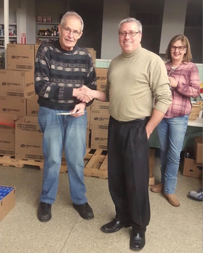 Rotary Club also presented a check for $500 to Fred Lutzke, organizer of the “Love Thy Neighbor Ministries and Food Pantry” in Wattles Park. The funds are part of a $1,000 grant for the project obtained through the Rotary Foundation and matched by the local club.