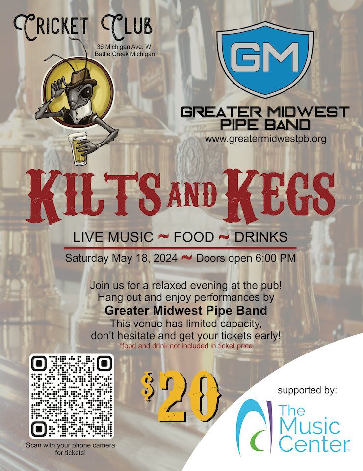 An opportunity to hear the ethereal sound of bagpipes and drums happens this Saturday at the Cricket Club in Battle Creek. The Greater Midwest Pipe Band (which has a home base in BC) is preparing for the prestigious World Pipe Band Championships this August.