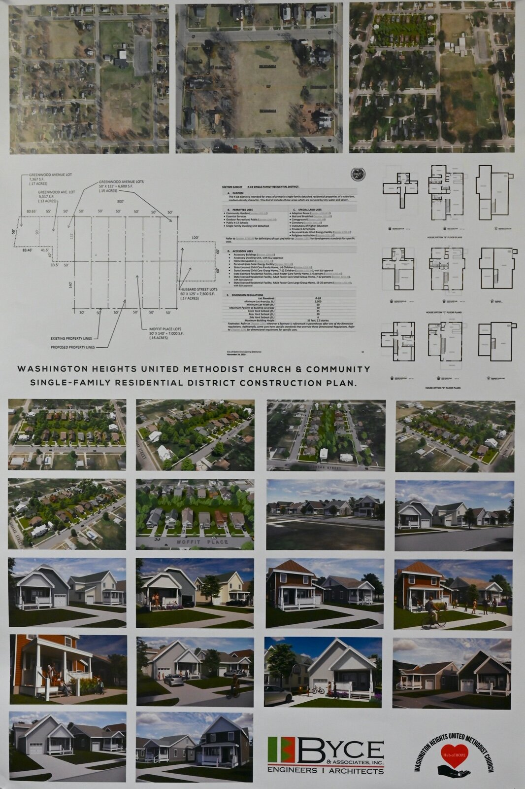 A poster shows the architectural plans for property that Washington Heights United Methodist Church plans to develop.