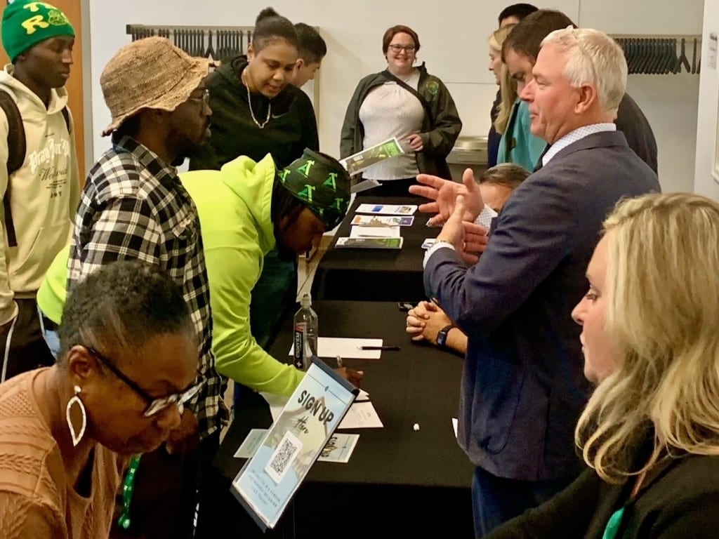 Stephanie Farrell, executive director in charge of Human Resources for Greenleaf Hospitality Group, says there should be a net gain of about 400 jobs after the Kalamazoo Event Center opens in the Fall of 2027 and activities at Wings Event Center (a long-standing property of Catalyst Development Co.) ratchet down in 2028. She was asked if workers displaced from Wings would absorb many of the jobs at the new venue. Wings Event Center has hosted ice hockey, concerts, and other events for many years.