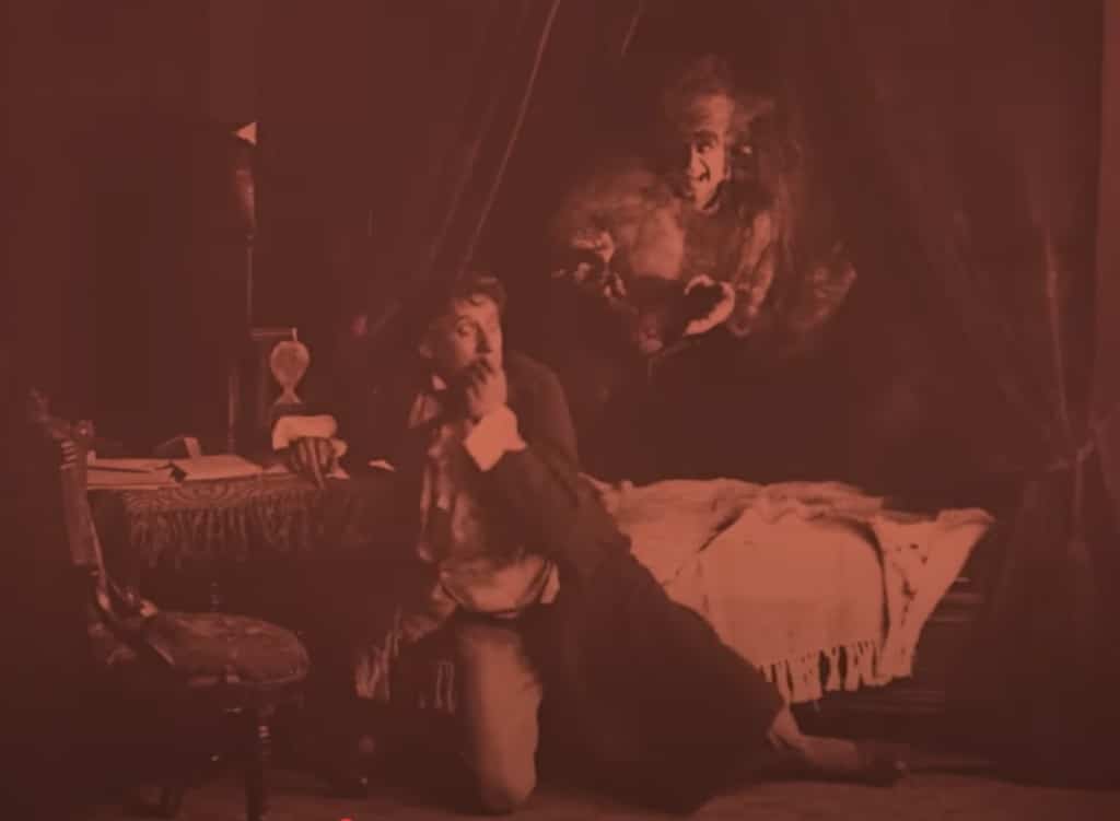 Some of these films were made during the time of Queen Victoria. With movies this old, you’re looking at flickering, degraded film, like seeing dreams of people long dead. Since there’s no dialogue, no voice, that means actors must use exaggerated expressions, lending an unreal patina to the action. Costumes, hair, and makeup are also freakish, especially in fantastical films of that time.