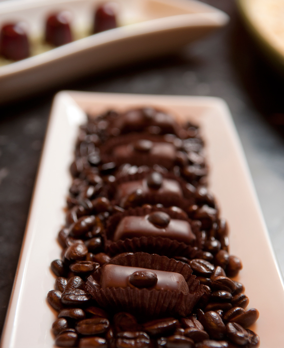 Coffee Lovers salted caramels in dark chocolate.