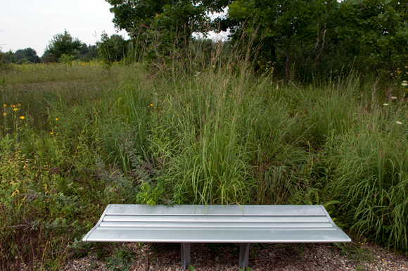 Landscape Forms benches are located at the entrance of the Chipman Preserve. Boulders serve as resting places in other spots.