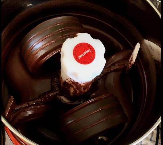 Next comes refining, using heat and pressure and special machinery to release the cacao butter from the cacao nibs.