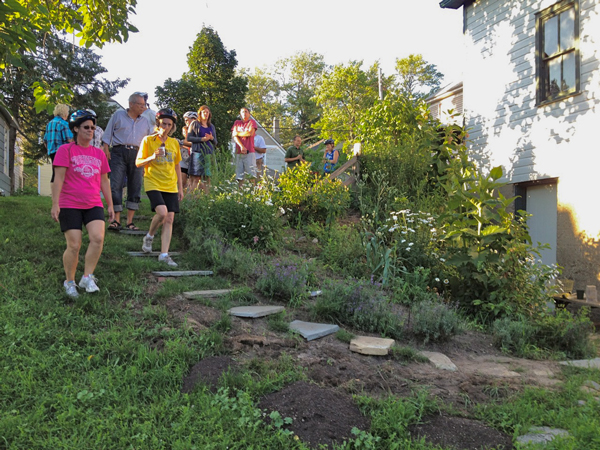 On bikes and by bus, those interested in learning more about these gardens spent the evening traveling from spot to spot finding out the unique characteristics of each piece of land and those who tend it. Some of those on the bus were there to get gardening ideas, others to see what kind of results are emerging from the soil of the neighborhoods and the neighbors’ toil.