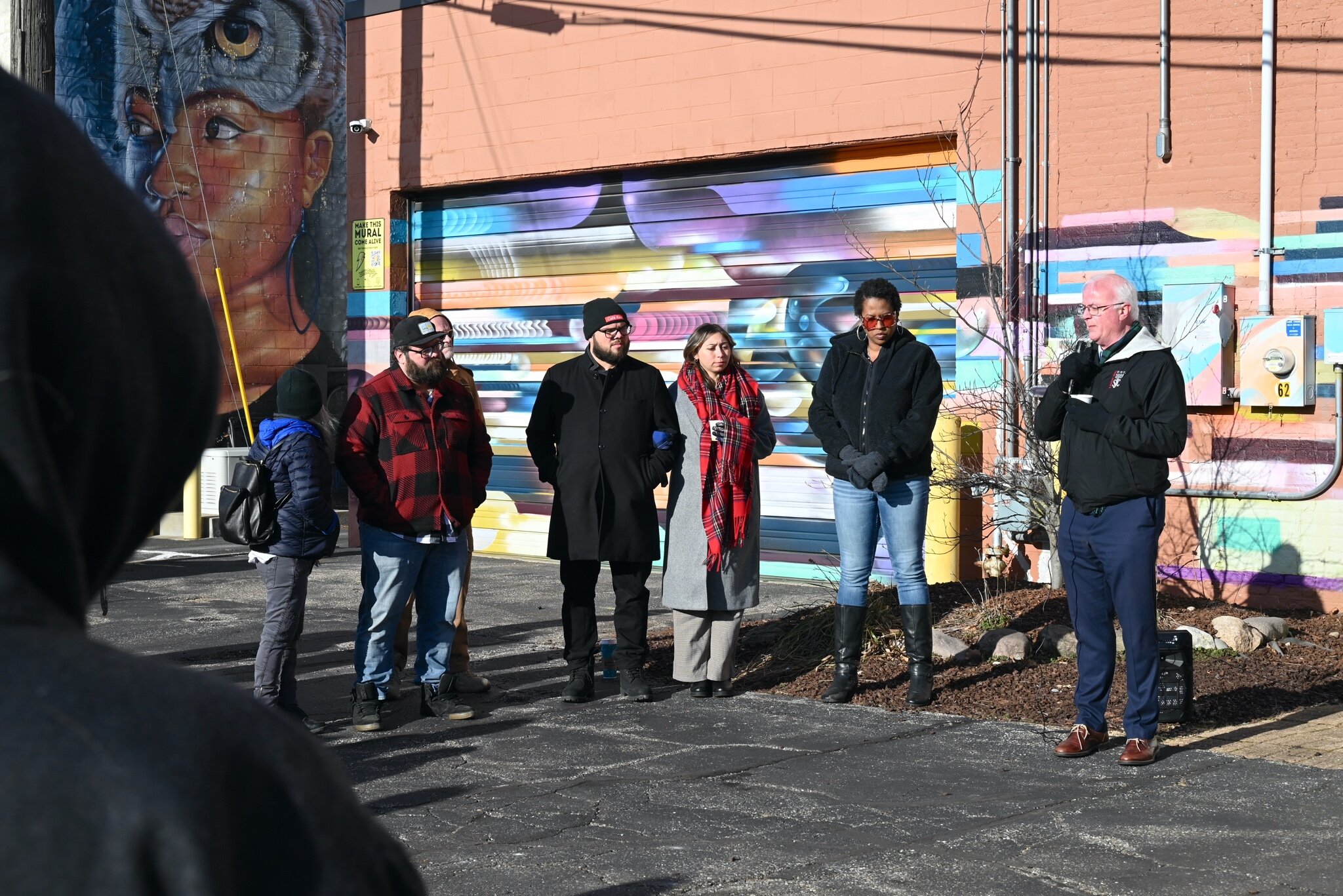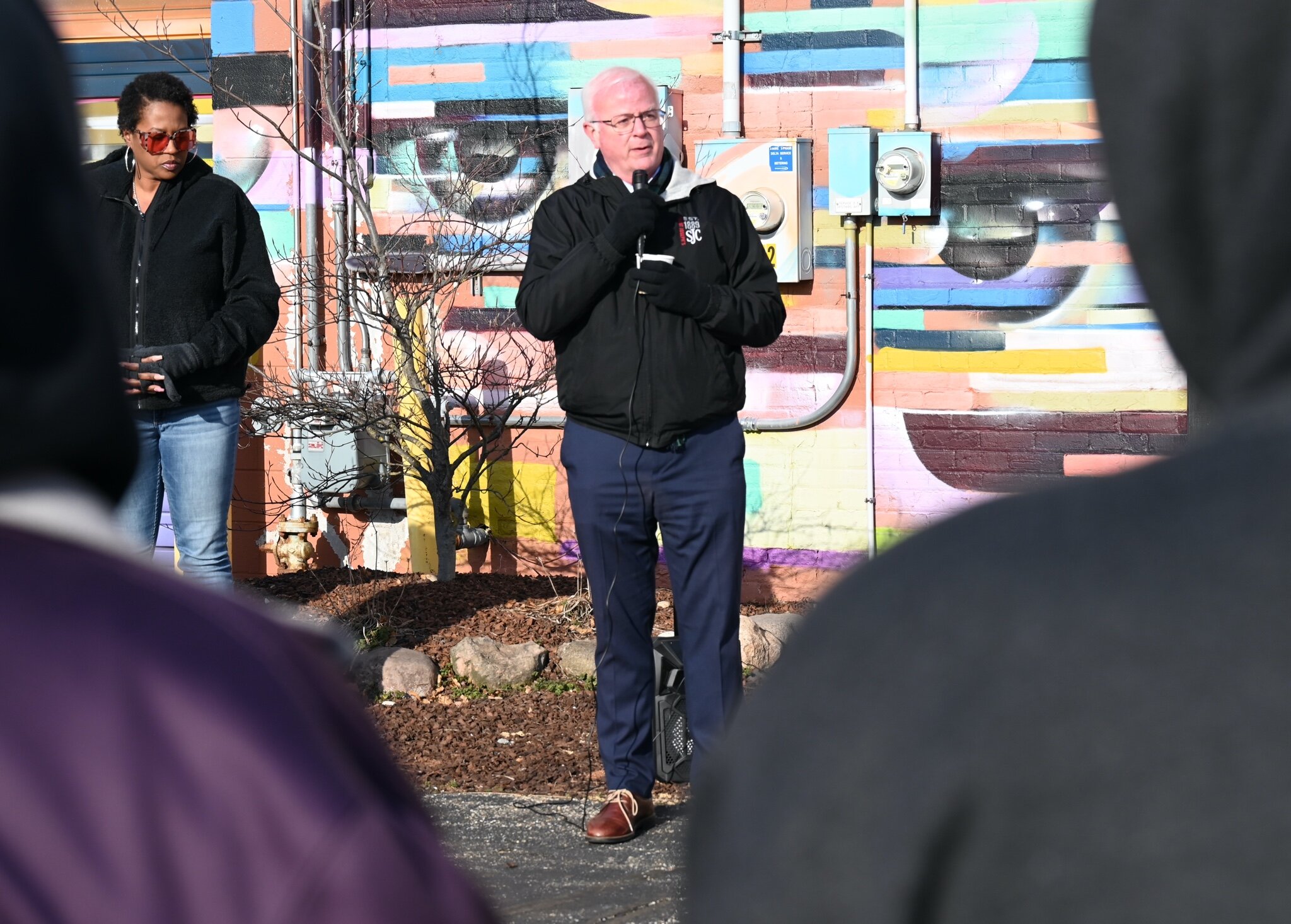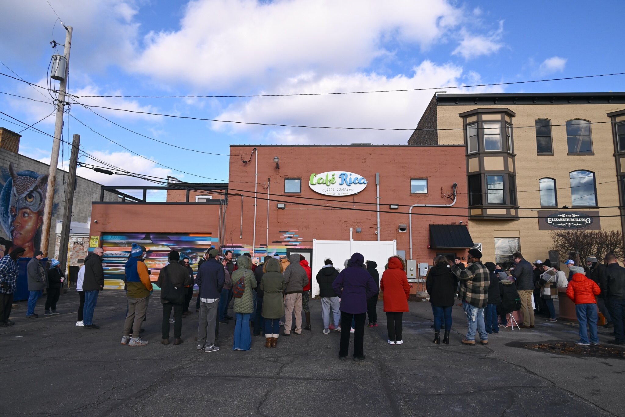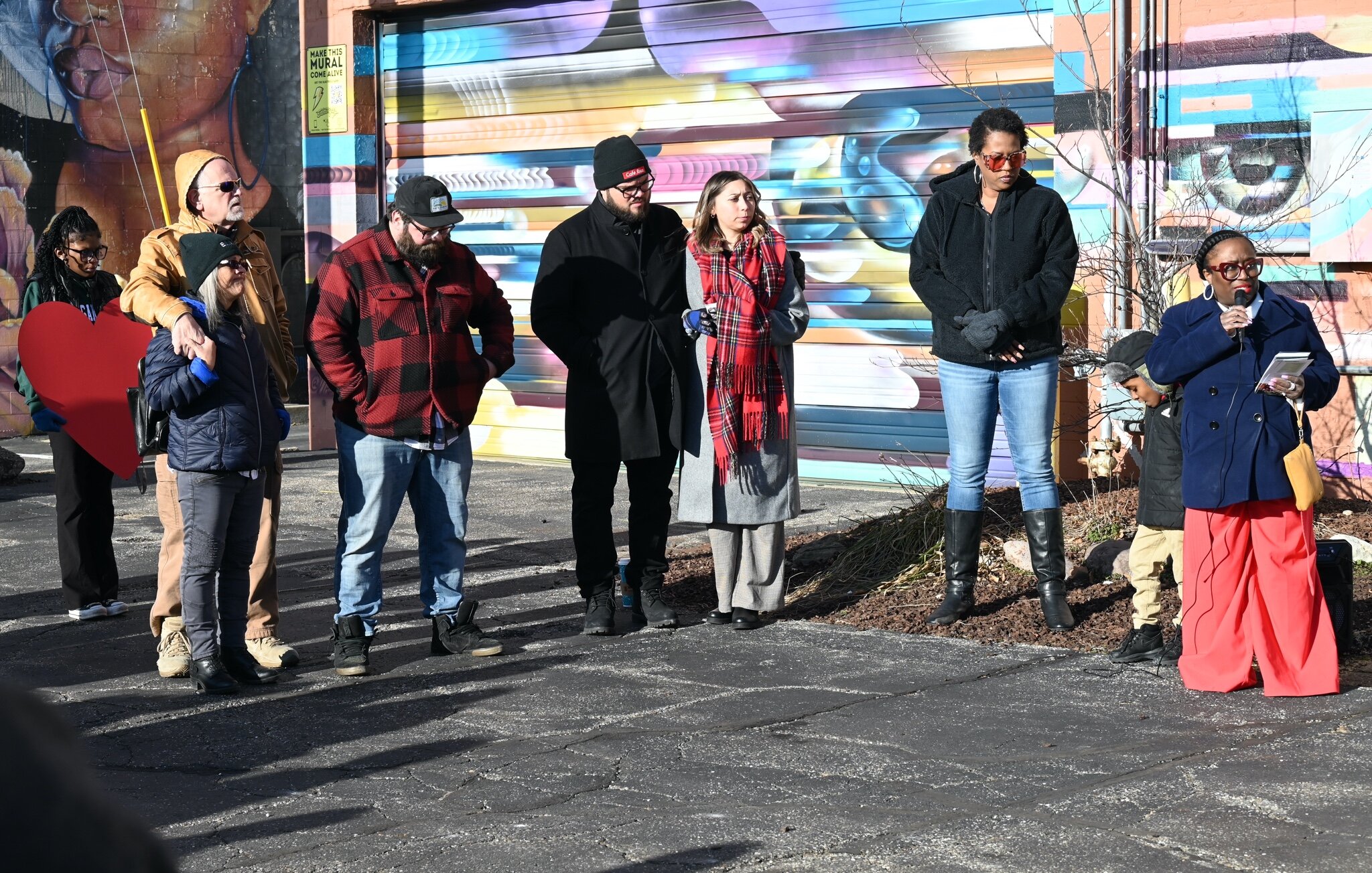 On a bitterly cold Sunday afternoon, three days later, 75 people gathered behind the coffee shop to seek healing and community. The vigil, organized by the Battle Creek Coalition for Truth, Racial Healing, and Transformation, included remarks by Boonikka Herring of the Coalition, George Bredehoft of Cafe Ricá, and Battle Creek Mayor Mark Behnke.