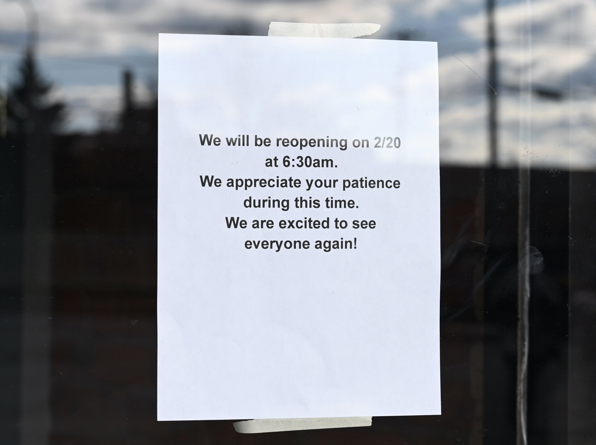 Sign on the back entrance to Cafe Rica indicating that it will re-open on Feb. 20.