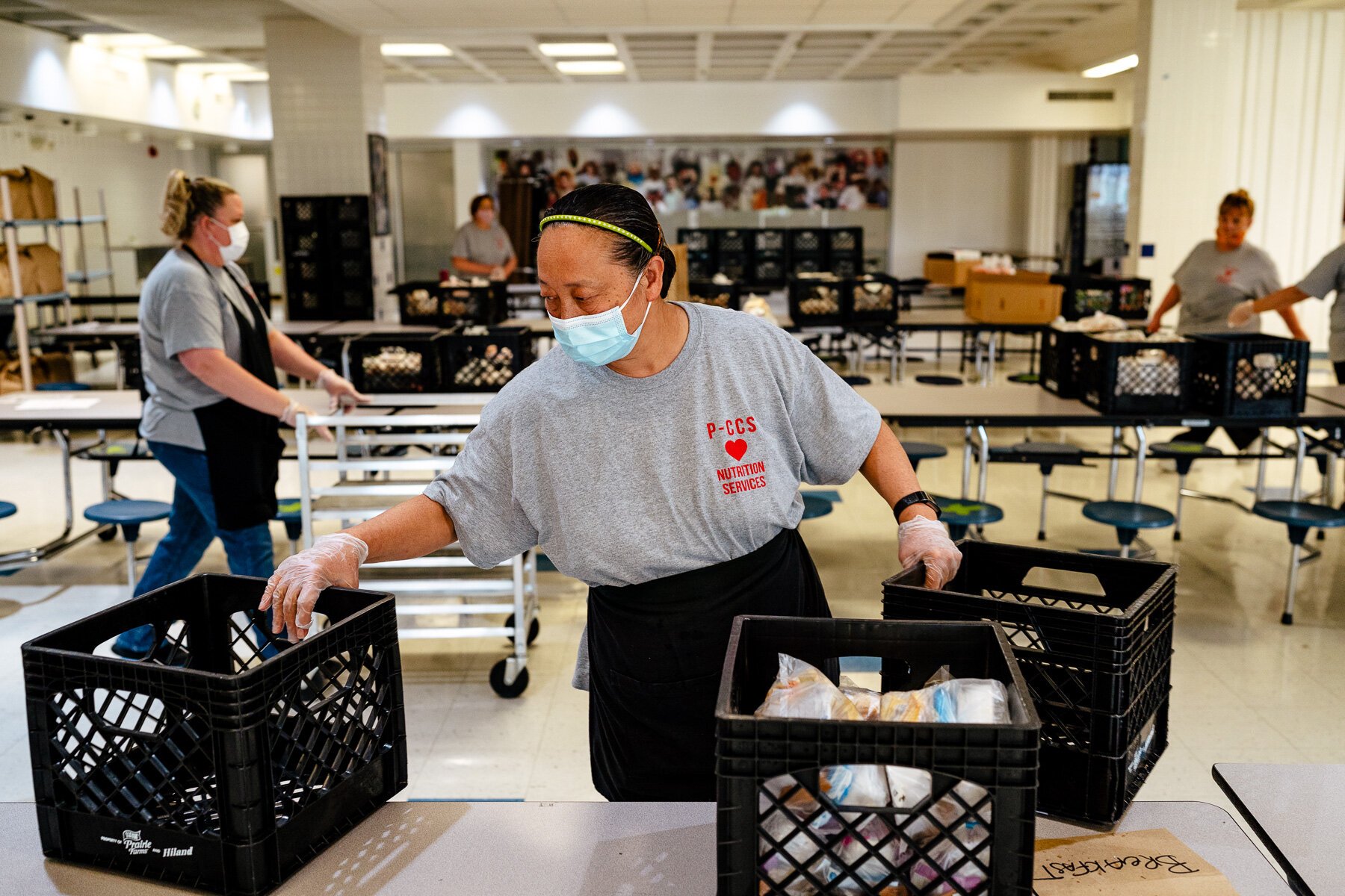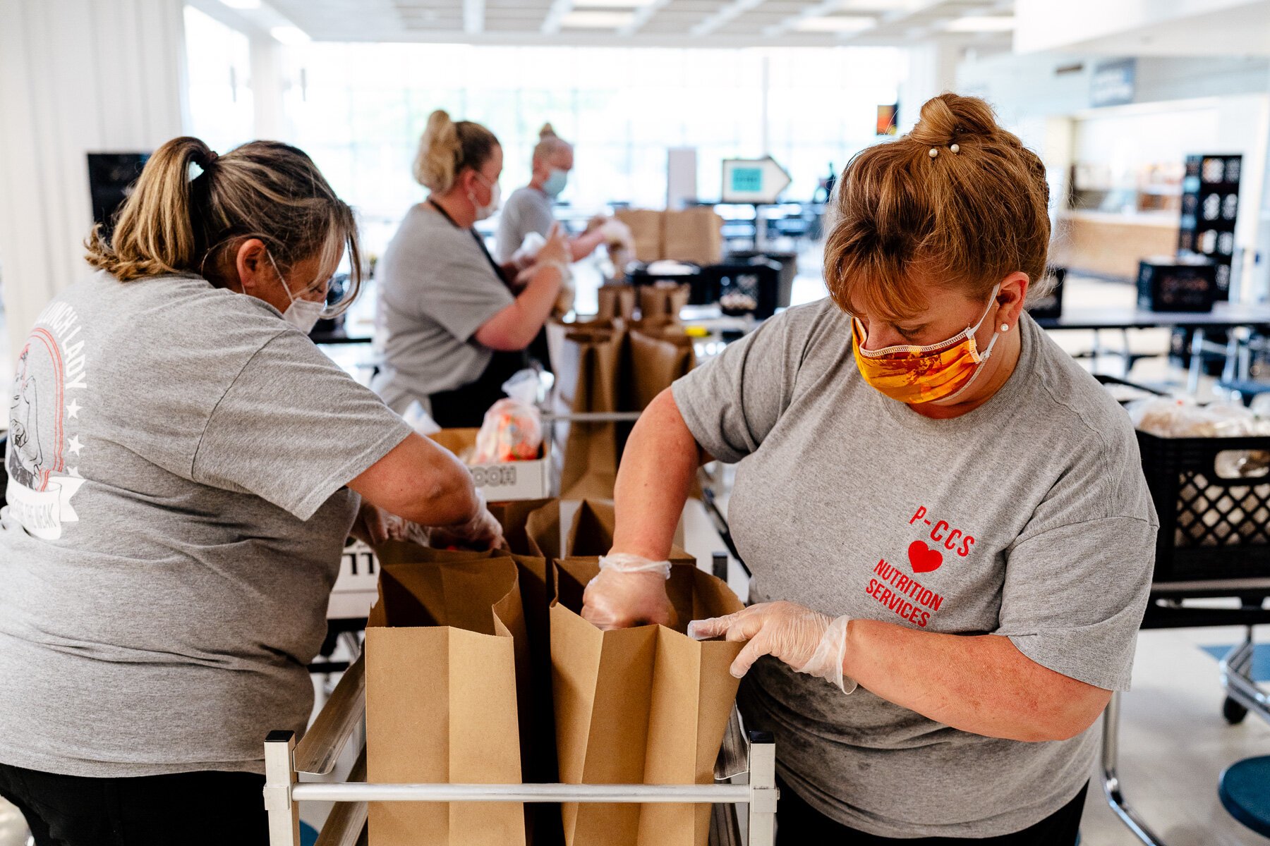 P-CCS responded with an ever-evolving program that initially provided free breakfasts and lunches seven days a week via pickup sites at select school buildings. As students began returning to class on a part-time basis, they ate some meals at school and brought others home with them. Meal pickup locations remain open this summer.