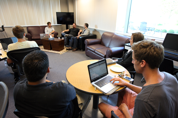 “We have people from all different backgrounds,” Grodecki says. “It’s almost like going to a networking event every day.”