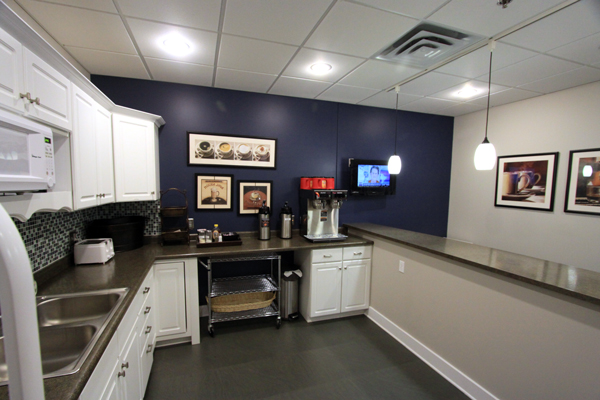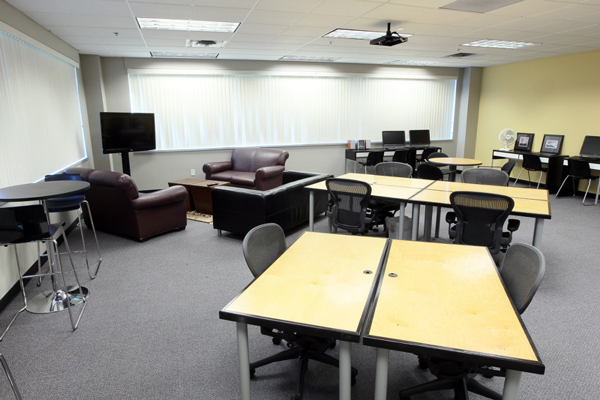 Standard desks, barstool tables and chairs, couches, white boards and a television make work stations comfortable and adaptable; coffee and tea services are standard (from a full kitchen) to indoor settings or an outdoor patio setting, along with fiber-based Wi-Fi, hot-spot printing, overhead projection and LED TV’s for group presentations.
