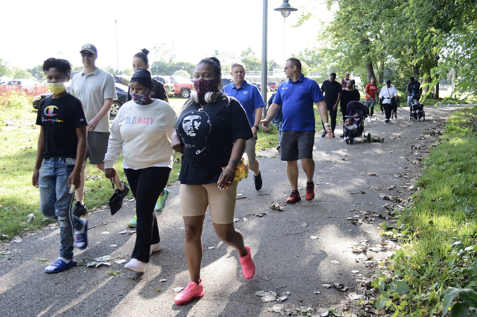 He affectionately points out a few youth walking with him, “these knuckleheads — er, young men,” as the reason he was walking for something more than just fitness.