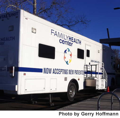 We expected to see a lot of kids with toothy grins, but most kids are covered by Michigan’s “Healthy Kids Dental” program, so they don’t have to put off dental care, the way their uninsured parents do. The Family Health Center also sends a mobile unit to schools, to provide care for students.