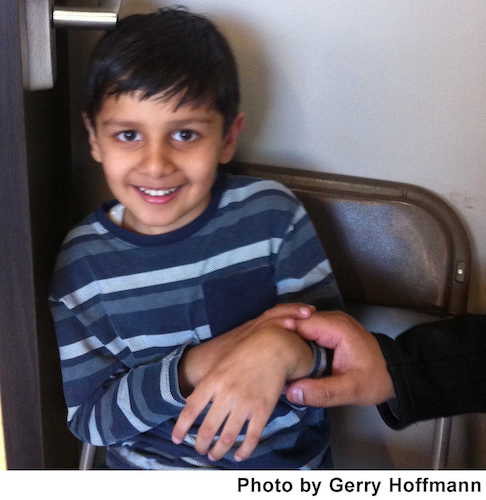 We did, however, see one young person: Marwaha Jatin, a 6 1/2-year-old, waiting for a cleaning. He squirmed in his seat, covering his face, shy about being interviewed. He also offered “fake news,” claiming to be 8-1/2. His dad, Amit Kumar, was proud to show a picture Marwaha had drawn. Dad volunteered that they were mainly there, “because of all the chocolates that Marwaha’s grandmother gives him.” The two were in line for service, so we hope Marwaha only needed cleaning.