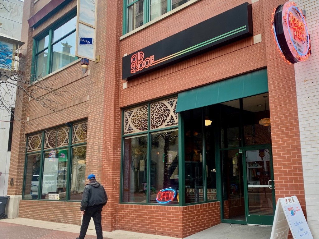 “Old school is a philosophy,” says James Flora, co-owner of the new tavern and eatery at 125 S. Kalamazoo Mall. “It’s just saying we want to kinda go back to the way it was before all the tech and before all the stuff that grabs our attention — and be present. That’s really the motto is to be present, connect, and talk like we are now.”