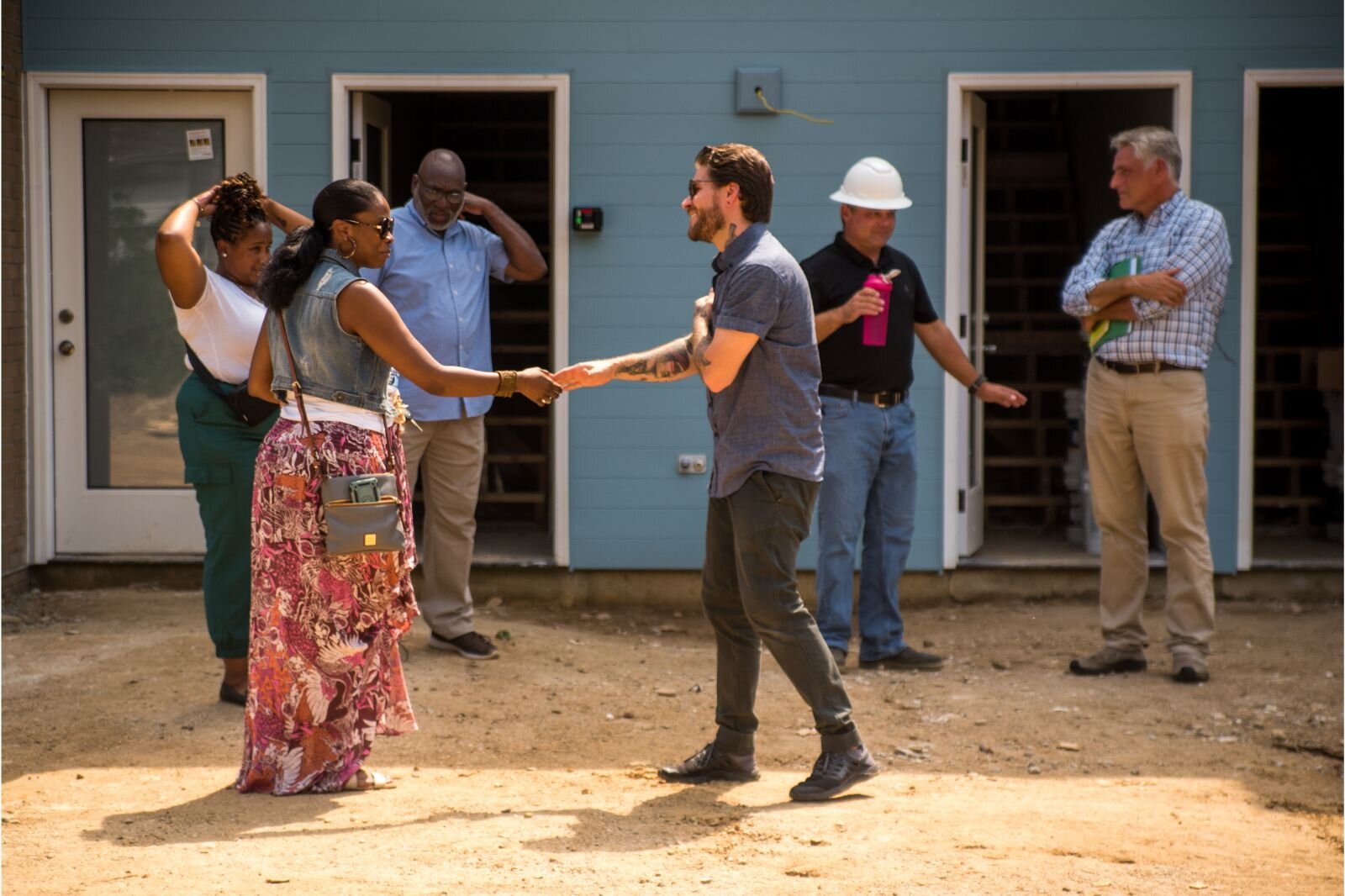 Members of the Land Bank’s board of directors, as well as other project investors, toured the location on Wednesday, Aug. 23. The Land Bank has been working to help the Eastside Neighborhood develop affordable, mixed-income housing, and more space for new businesses.