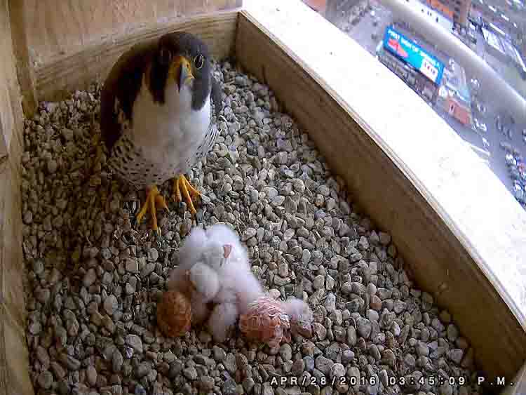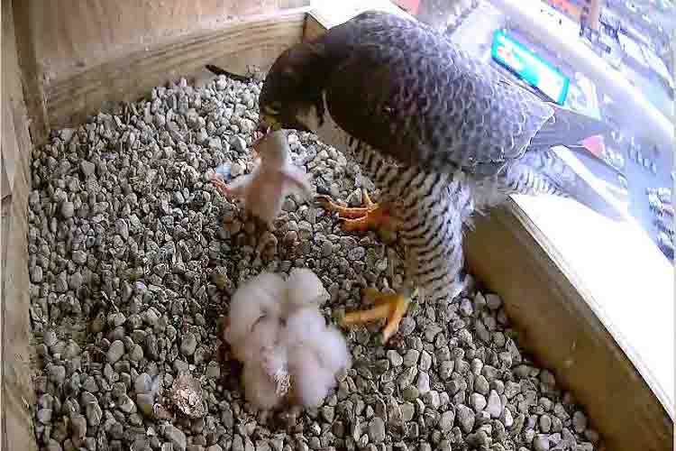 And locals have taken to heart the responsibility of keeping the birds safe. If people downtown had not remained alert, half of the young birds raised in Kalamazoo would not have made it, Walter says.