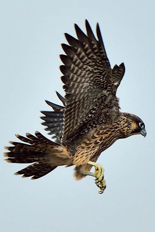 Peregrines find tall places to nest that reminds them of the cliffs and bluffs on which they would raise families in the wild. An abundance of pigeons, starlings, and other birds some consider a nuisance means they are well fed. Known as the fastest bird in the air, they have few predators in cities.