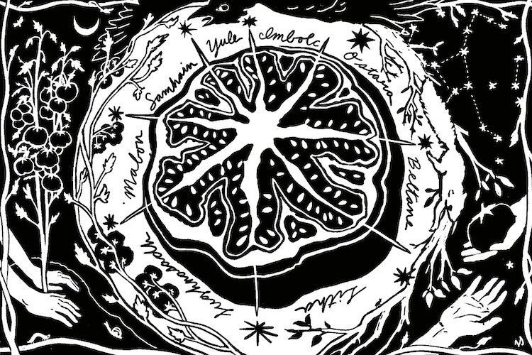 “Most modern pagans follow the eight-spoke Wheel of the Year of festivals that evoke the agricultural cycle but also speak to the personal life cycle. In many traditions, the Wheel is expressed in terms of a specific culture’s mythology; in HGF we try to avoid specific deity names or stories and focus on core meanings.”