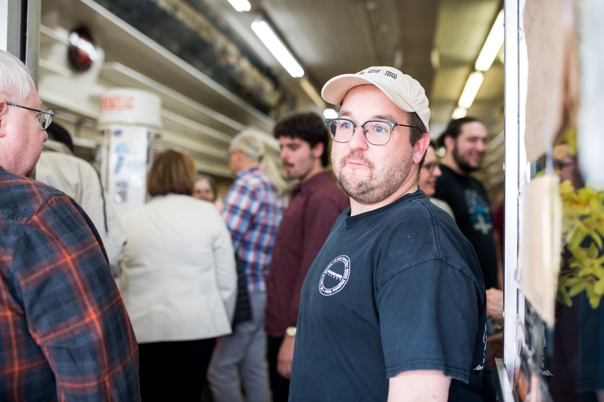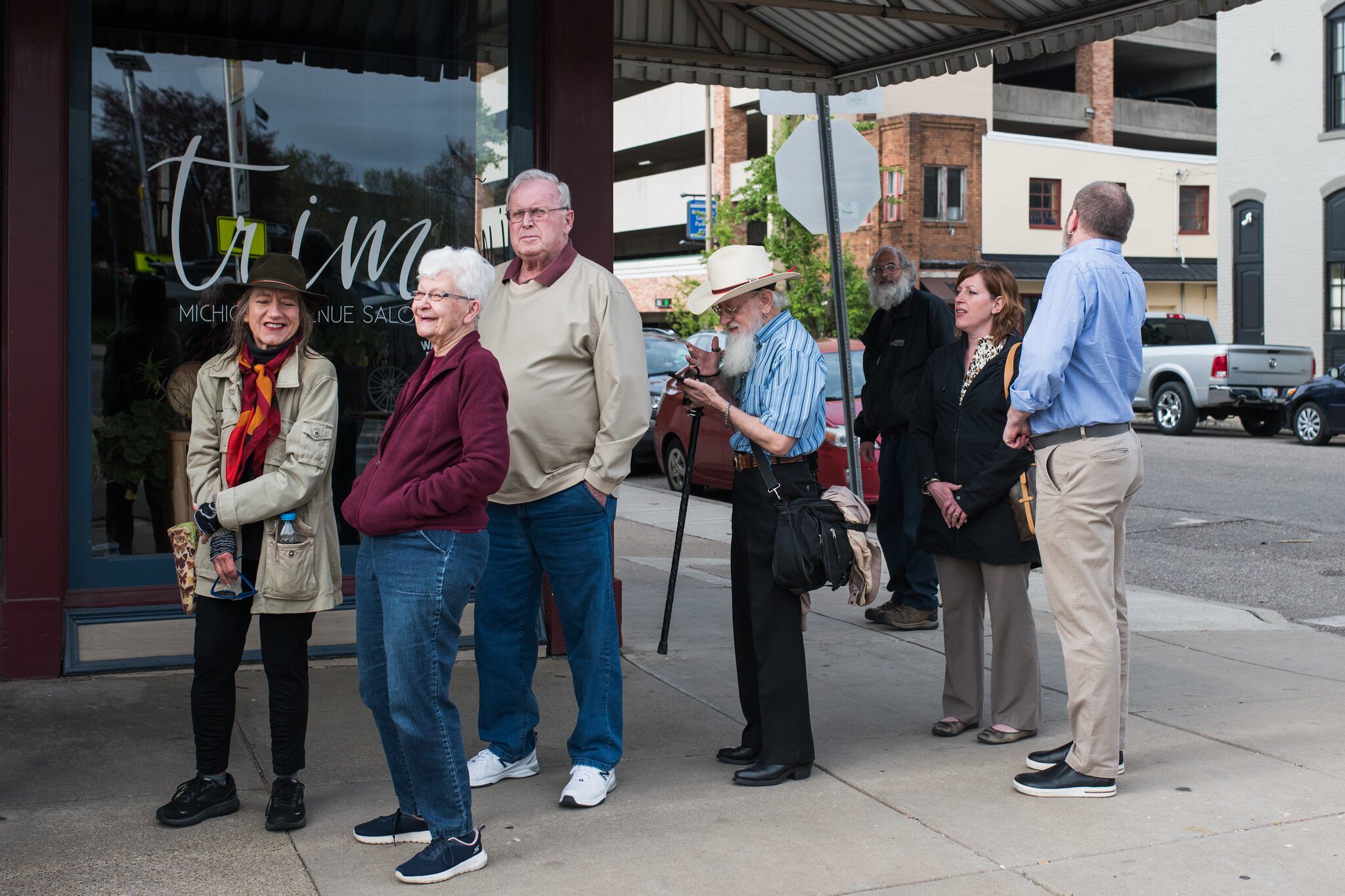 People lined up down the block to pay their respect to Dean Hauck at Michigan News Agency on Friday, May 2, 2025.