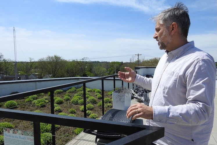 A green-roof portion of the roof of The Creamery Apartments in Kalamazoo redirects rainwater and promotes a more climate change-resilient environment, says Matt Hollander, president of Hollander Development Corp. and the developer behind The Creamery