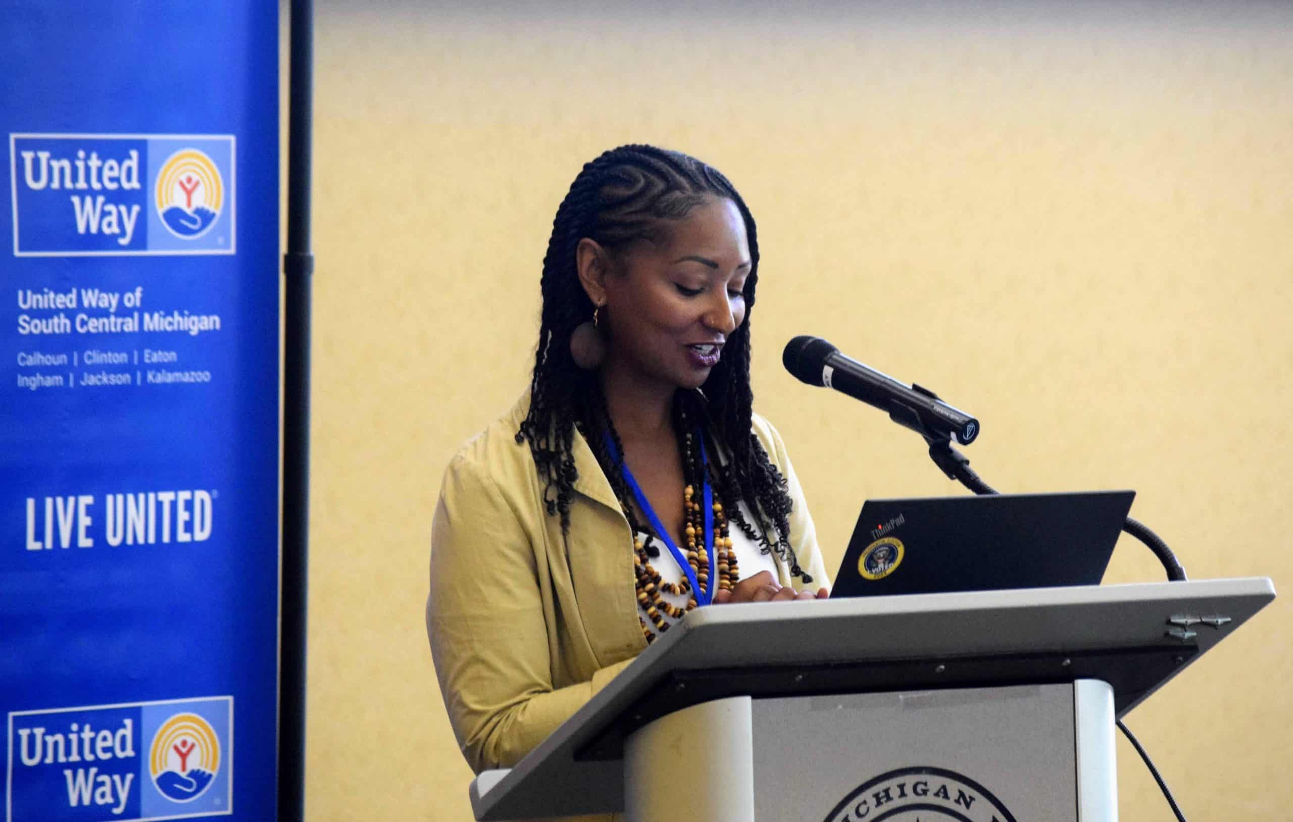 Patrese Griffin, Continuum of Care Director welcomes those attending the 2025 Collaboration for Housing Equity.