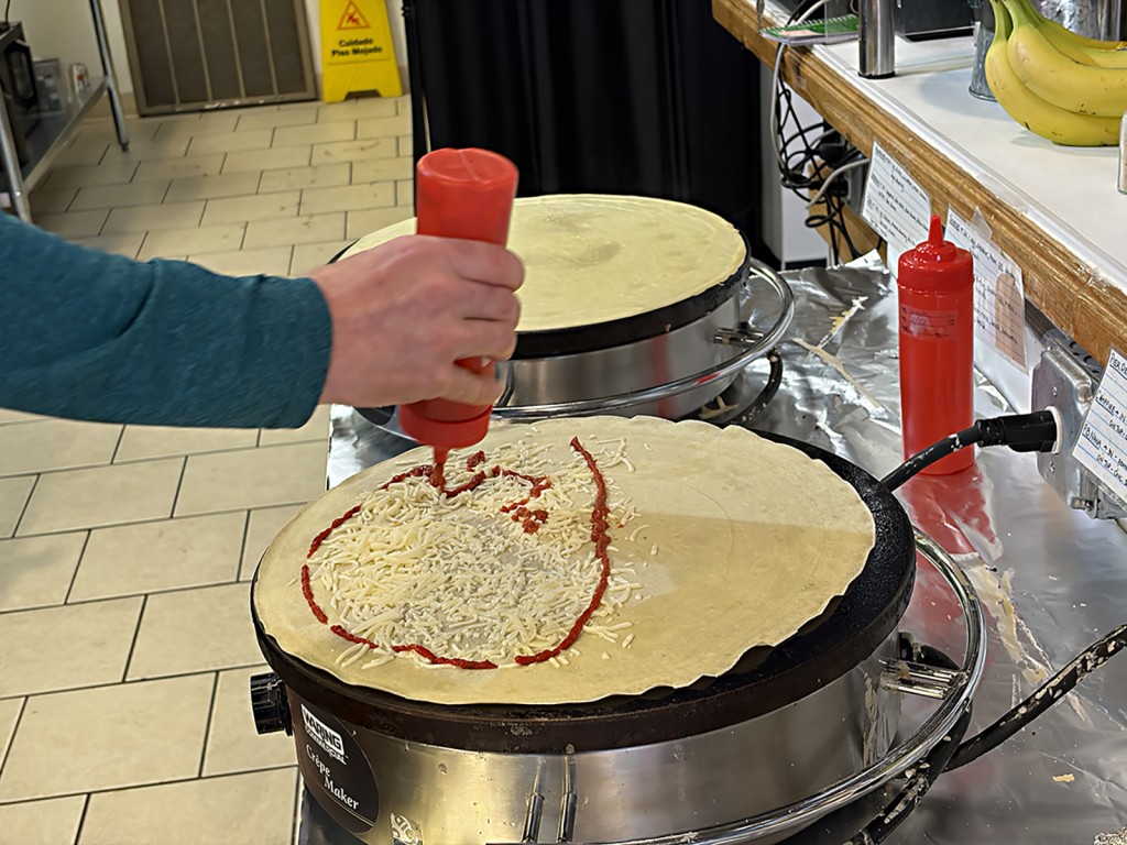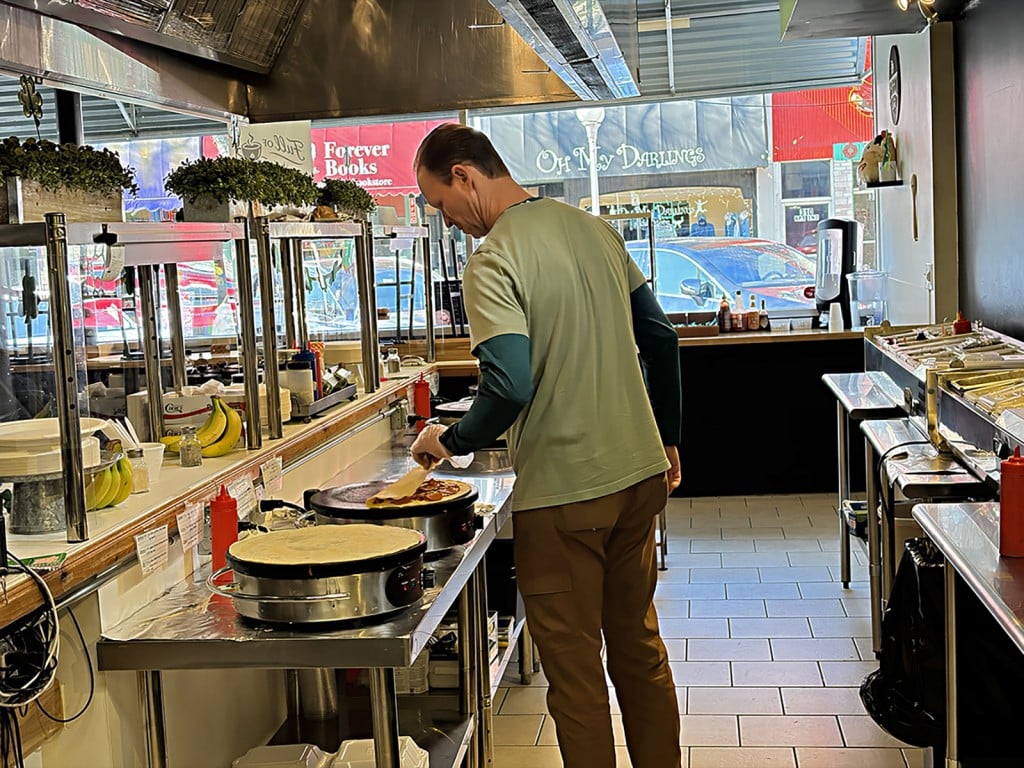 “I’ve been putting money away for a while, and almost all of it for this creperie came out of our pocket,” Aaron says. “Getting close to the opening, I thought, ‘It’s getting tight,’ so I did go to a credit union, and I took out a small personal loan. I just kinda’ had that money stashed away in case, and we used some of it for the espresso machine.”