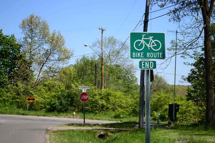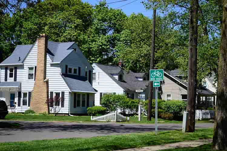 It, and a matching wiggle in Eastwood, are examples of “bike boulevards,” Leuty says. The method of directing bikes onto roads with speed limits of no more than 25 mph., with lower traffic, is becoming a standard practice in other communities around the country. They are ways to guide bikes to businesses and bus stops along West Main or East Main. They are also cheaper and easier to create than a paved bike trail or shared-use path.