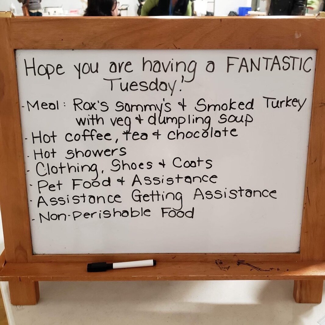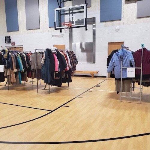 The Community Warming Shelter uses the gymnasium of the Salvation Army. It is an almost completely volunteer effort. As the warming shelter draw in more people the coalition hires a security staff person and then three to six volunteers help as needed. Along with warm space, the shelter provides coats, clothing, blankets, pillows, hygiene products, a hot meal, a snack bag, and any other items that have been donated, including tents and flashlights. It also provides access to showers, adjacent to the gym and offers help to people applying for housing assistance and government food assistance.