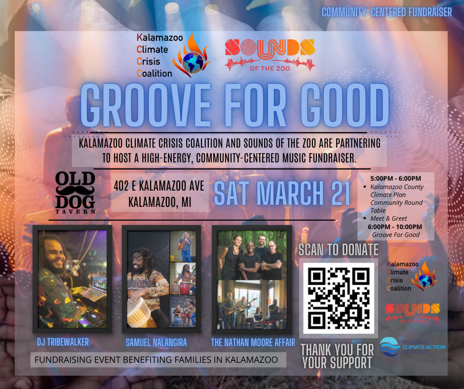 Kalamazoo residents are invited to a lively night of music, community conversation, and climate action at “Groove for Good – Climate Action Night,” a fundraiser at Old Dog Tavern supporting local environmental efforts.