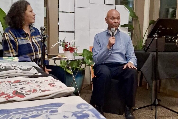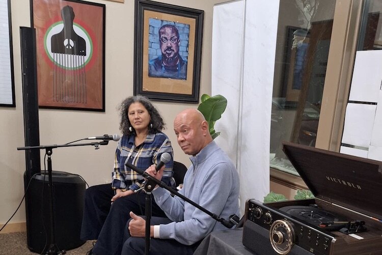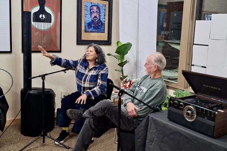 Michelle Johnson, co-founder and ED of Institute of Public Scholarship, speaks with Neil Juhl, former owner of Flipside Records.