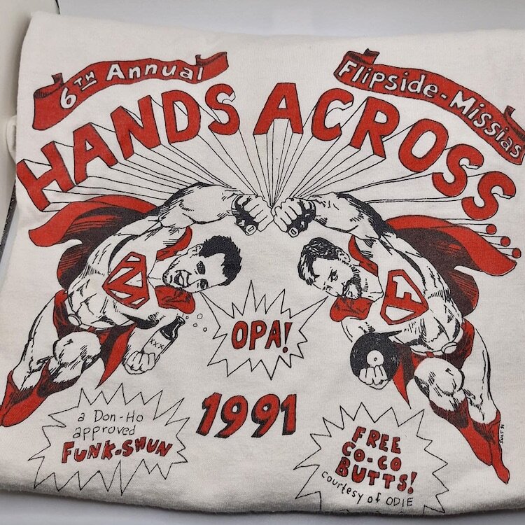 They had a pig roast, music from Missias’ jukebox — filled with a variety of oldies and new records by Flipside — and “a lot of tomfoolery. And we actually did hold hands, and went through the bar all the way across to the record store.”