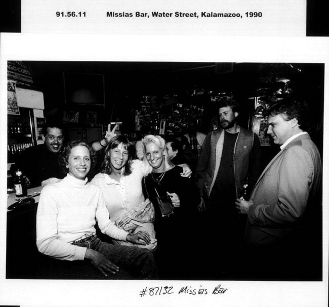 1990 photo of Missias from the Kalamazoo Public Library local history department. Bartender Al Yucker (left) with unknown patrons.