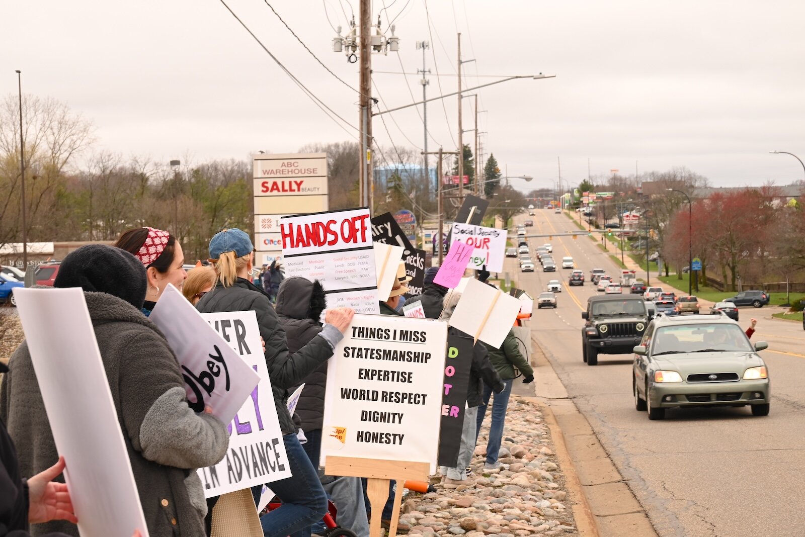 People lined both sides Beckley Road between Riverside and M-66 during the April 5 Hands Off demonstration in Battle Creek.