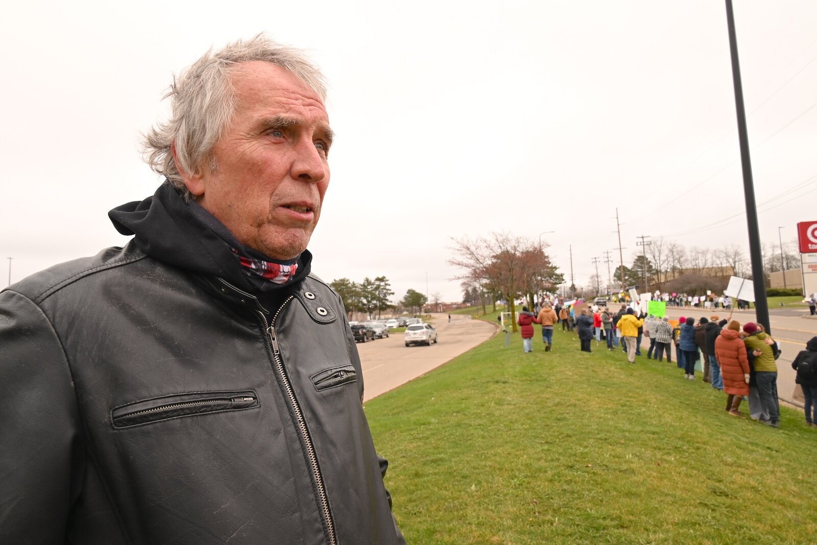Linda Pell attended the April 5 Hands Off demonstration on Beckley Road in Battle Creek.