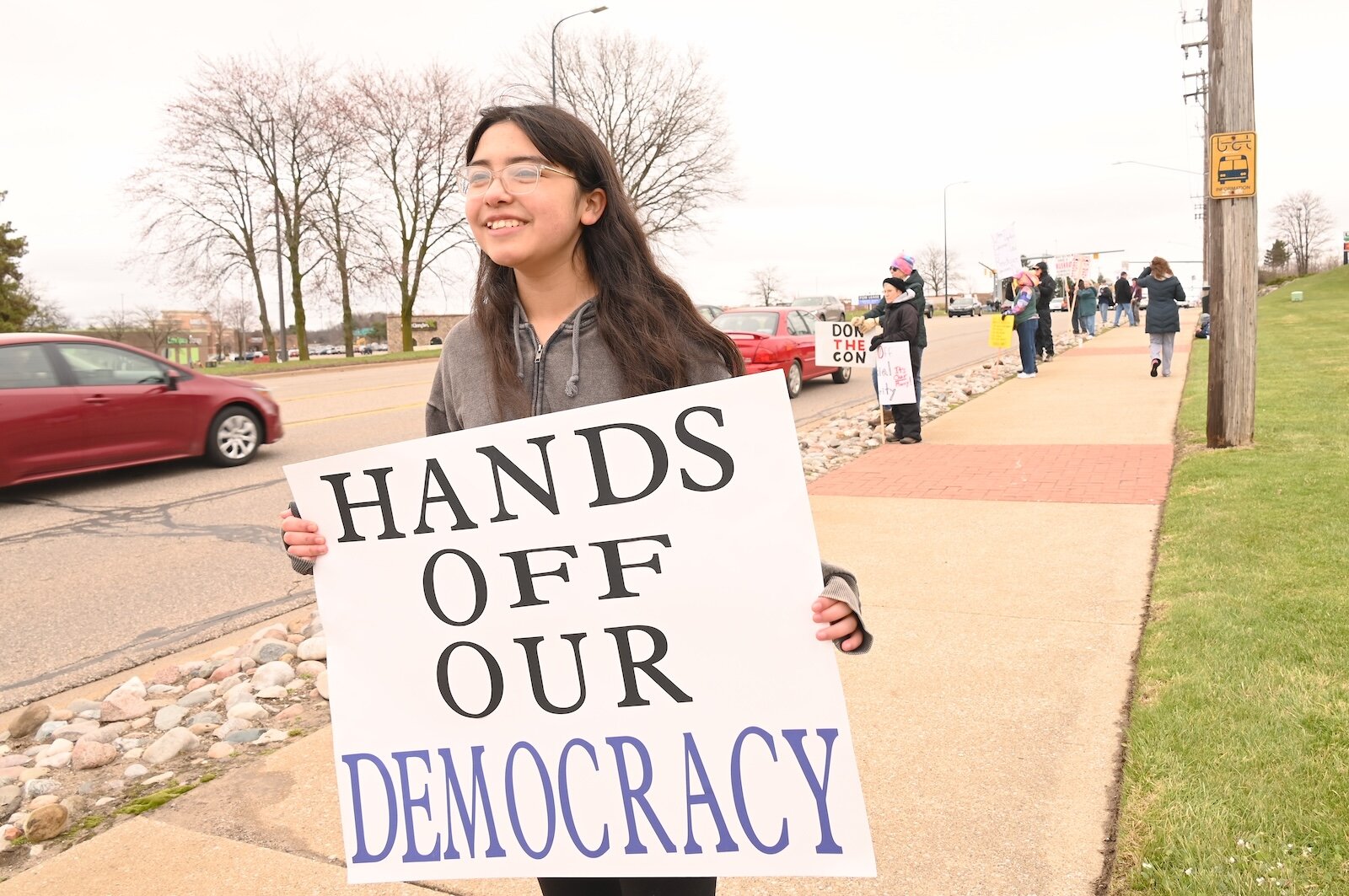 Yardly Fernandez, a Lakeview Middle School student, attended the April 5 Hands Off demonstration on Beckley Road in Battle Creek.