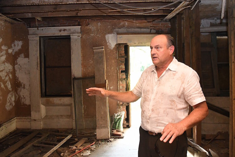 An off-white material covers openings that used to encase glass windows and the sienna-colored brick that was used to build the two-story Greek Revival home looks weathered. But, a local businessman looked a little deeper and saw what the structure could look like with an influx of cash and some physical labor.