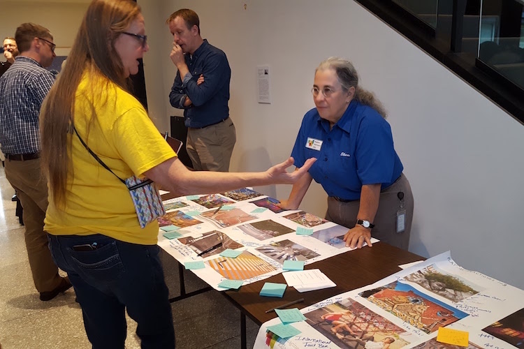 About 200 people turned out Sept. 12 to the Kalamazoo Institute of Arts to see a draft of the plan that has emerged. Before and after a formal presentation of the draft Master Plan, the public was encouraged to stop at one of four tables to learn more about the plans and offer input. The topics Great Neighborhoods, Downtown Life, Connected City and the Master Plan itself each had a table where people could offer input and find out more about the plans going forward.