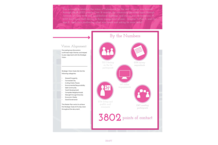 Through the Imagine Kalamazoo 2025 process, city planners collected ideas from surveys, at neighborhood gatherings, myriad meetings, and online — for a total of 3,802 points of contact in the community. All the information that would become the basis for a new Master Plan.