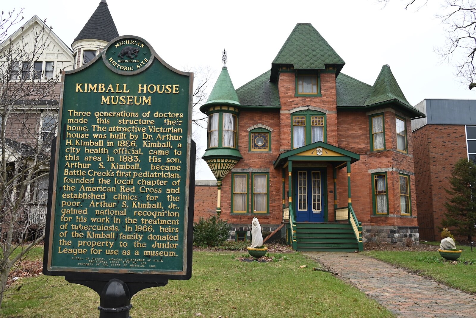 Kimball House was built in 1886 by Dr. Arthur Herbert Kimball. In November 1966, the Junior League of Battle Creek accepted title to the Kimball House “on behalf of the community.” They spent the next two years and approximately $17,000 transforming the family home into a community museum and historic home exhibit, which officially opened in 1969. Although the Junior League retained ownership until 1974, the daily operations were turned over to the Kimball House Historical Society, later named the Historical Society of Battle Creek (HSBC) in 1974.